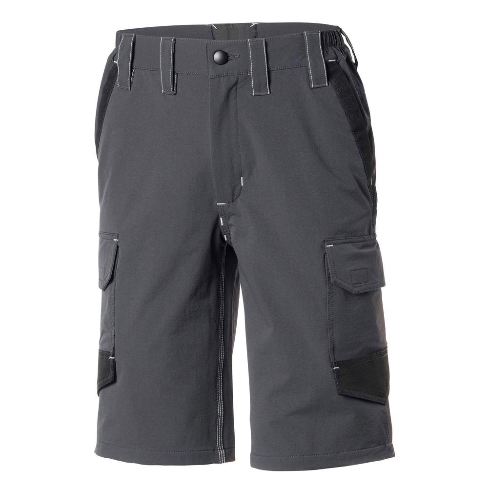 Due tasconi con pattina alle gambe, con gancio porta-badge (non incluso), su gamba sinistra tasca obliqua per cellulare con pattina per una facile personalizzazione, cuciture a contrasto.