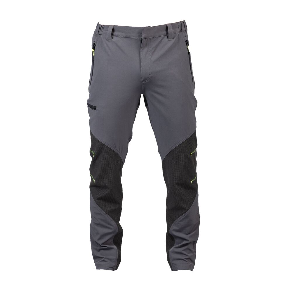 Pantalone Adamello light in tessuto elasticizzato di JRC in orizzontale e verticale 4 stretch con cerniere nastrate e triple cuciture, due tasche anteriori con zip, una tasca laterale con zip, una tasca posteriore con zip.