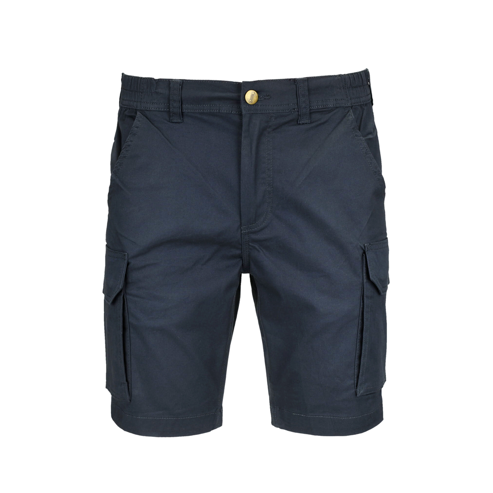 Pantalone bermuda Ventura di Sottozero con chiusura con bottone e cerniera elastico sui fianchi passanti in vita per cintura, 2 tasche principali, 2 tasche a soffietto sulle gambe con pattina e bottoni, 2 tasche posteriori con pattina e bottoni triple cuciture.