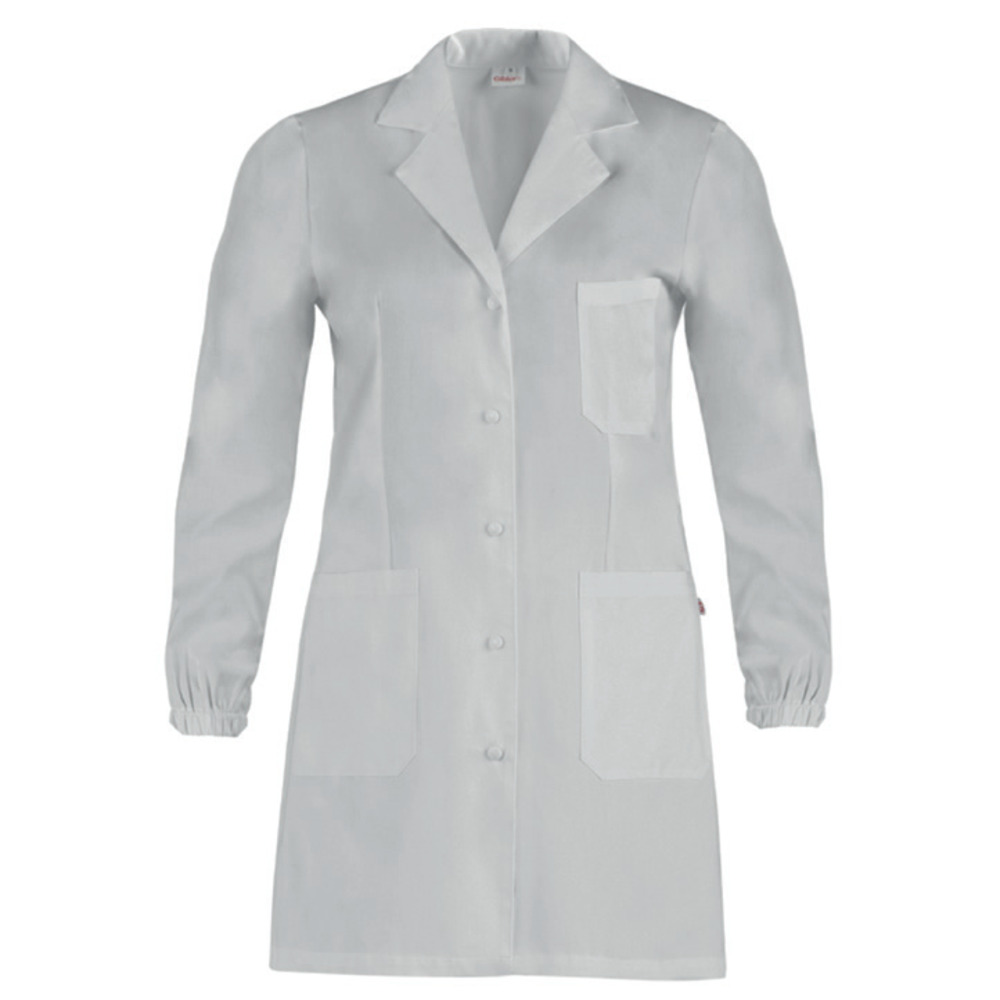 Camice Milly da donna di Giblor's con vestibilità Regular Fit e manica lunga, con polsino arricciato da un elastico interno, presenta un collo tipo giacca con revers ribattuto da un’impuntura a riva, chiusura centrale con cinque automatici in pasta bianca estremamente resistenti, due tasche di media grandezza ed un taschino portapenne.