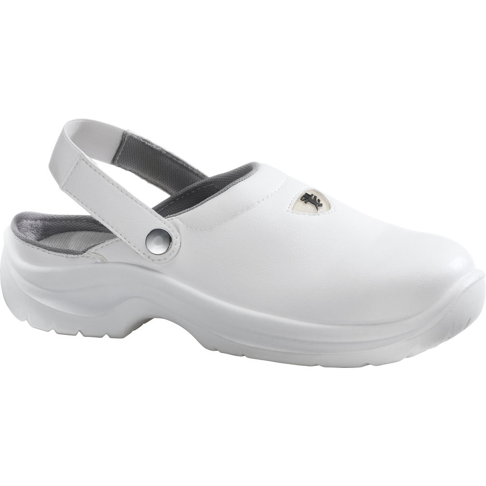 Calzatura con fodera traspirante e soletta antibatterica. Presenta suola in poliuretano, puntale termoplastico e cinturino posteriore. Lavabile in lavatrice per una facile pulizia.